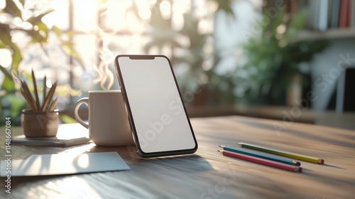 Cozy Workspace with Phone and Coffee
