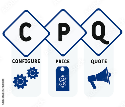 CPQ - configure price quote. acronym business concept. vector illustration concept with keywords and icons. lettering illustration with icons for web banner, flyer, landing page
