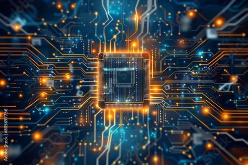 CPU processor microchip circuit board illustration created with generative ai