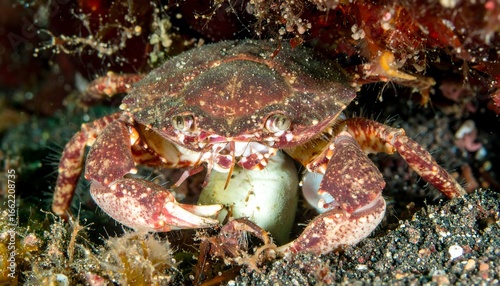 Crab guarding egg mass underwater