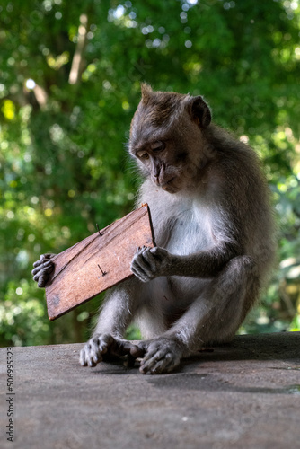 Crab-eating macaques (Macaca fascicularis lat.) at Monkey Forest in Ubud. Bali, Indonesia.