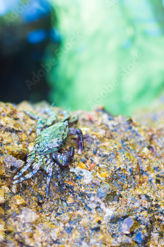 Crabs on a rock. Crabs have a sunbath on a rock near the sea.