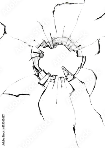 Cracked broken glass, texture for design on white background.