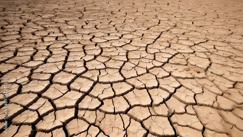 Cracked dry earth soil surface. Nature environment ground drought, desert land heat, climate change and global warming, hot summer weather