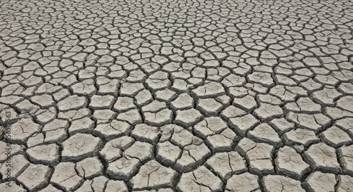 Cracked Earth Texture: Drought-Stricken Land, Barren Landscape, Global Warming Concept.