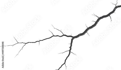 Cracked ground pattern with realistic fissure details. Grunge texture style adds aged rugged character. Vector illustration ideal for damaged surfaces or backgrounds.