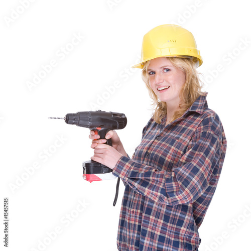 Craftswoman with drill machine