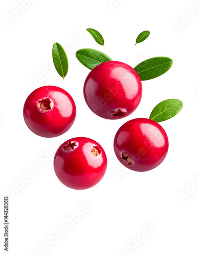 Cranberries Floating on White Background