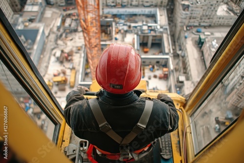 Crane Operator View: Construction Worker Controlling Crane at Building Site