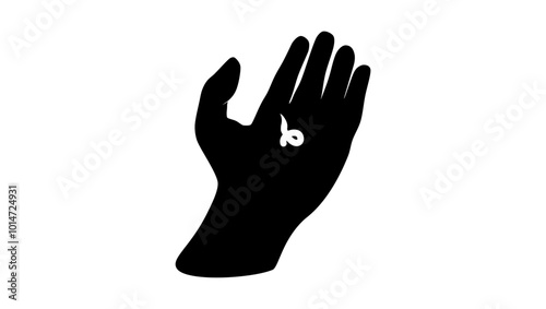 Cream on hand, black isolated silhouette