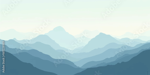 Cream pastel mountains under warm orange sunrise with misty atmosphere