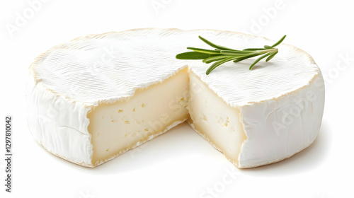 Creamy Cheese with Slice and Fresh Herb on White Background