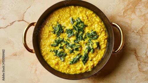 Creamy Lentil Curry with Spinach in Bowl on Elegant Background
