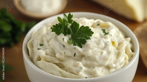 Creamy parsley sauce bowl, kitchen, cheese, herbs