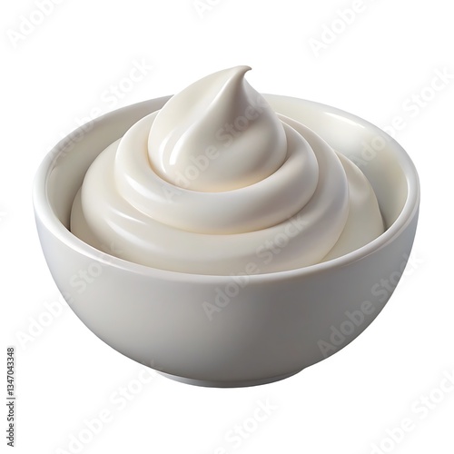 Creamy swirls of mayonnaise in a pristine white bowl, a delightful culinary detail, perfect for adding richness and flavor to your favorite dishes.