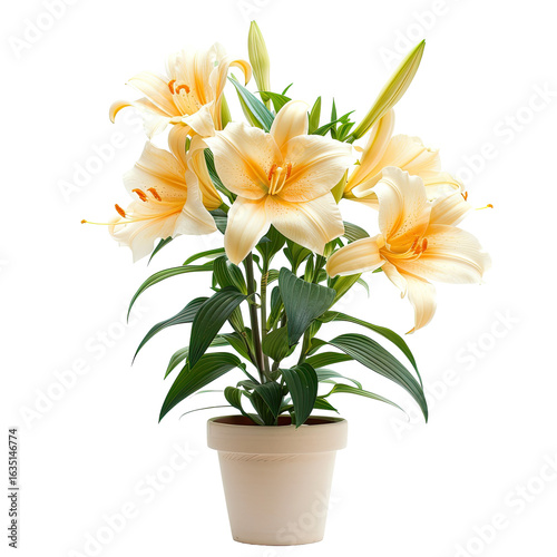 Creamy yellow lilies in a pot