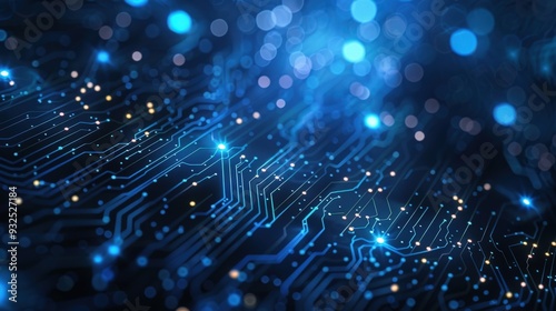 Create an abstract digital network circuit board background banner featuring glowing lights and connecting data dots in blue and black colors, emphasizing a big data technology concept