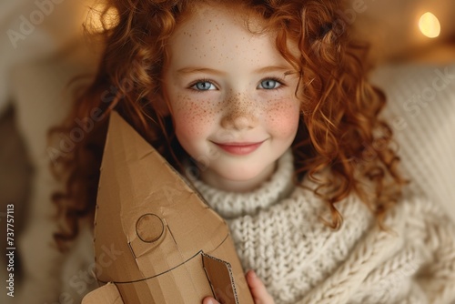 Create an image of a little girl with curly red hair and freckles