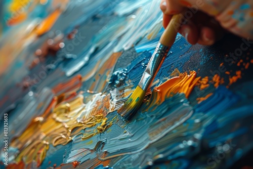 Creating a picture using a brush and watercolor, especially yellow mixed with blue, in order to add more colorful details and textures.