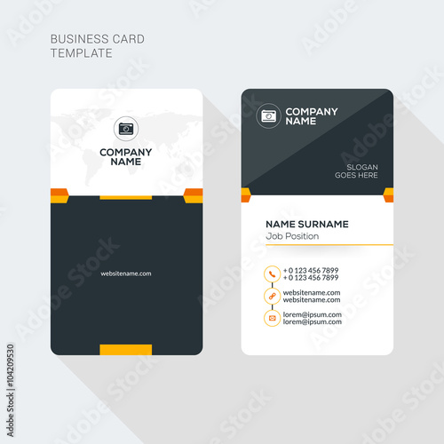 Creative and Clean Business Card Vector Print Template. Vertical Business Card Template. Flat Style Vector Illustration. Stationery Design