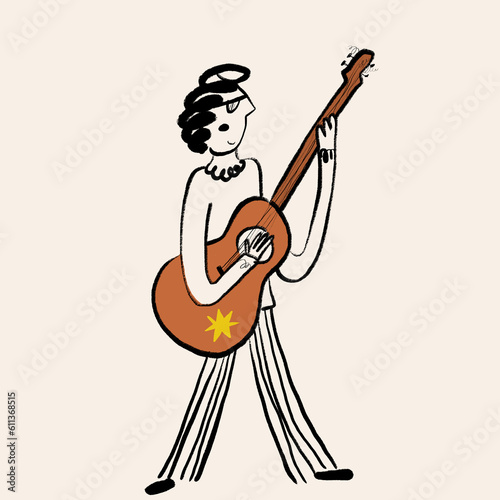 Creative cartoon drawing of woman with guitar as letter