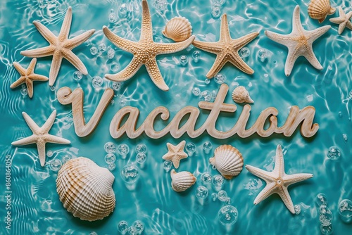 Creative concept about vacation. Blue sea background