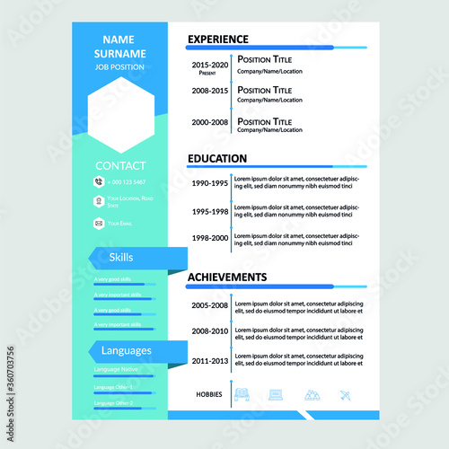 Creative CV/Blue Resume Template|Vector File