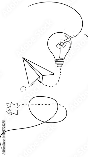 Creative doodle shows a paper airplane, star, and lightbulb in a flow