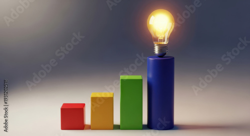 Creative Idea Generation Depicted Through A Light Bulb Atop Rising Bar Graphs, Symbolizing Innovation, Progress, And Business Development With Bright Prospects