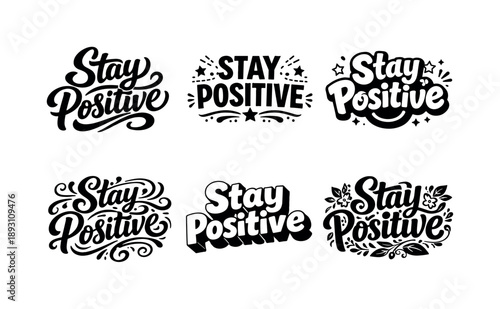 Creative Lettering Variations. Stay Positive. Set lettering. harmonious lettering variations of the same emblematic concept, each with different artistic