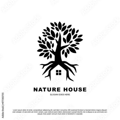 Creative nature house logo design. House and tree vector illustration