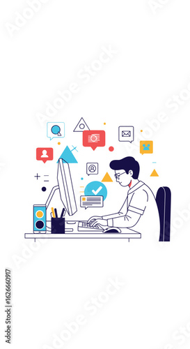 Creative professional working on digital project developing innovative solutions and building online presence with engaging content creation tools and strategies