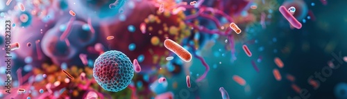 Creative representation of human microbiome with abstract organic shapes and vivid colors