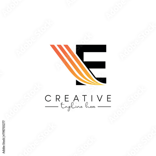 Creative Unique Letter E Swoosh Logo Design, Initial Vector Symbol.