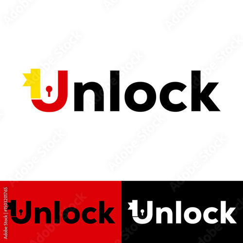 Creative "Unlock" Wordmark Logo with Keyhole in "U"