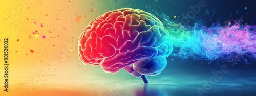 Creativity concept with a brain exploding in colors. Mind blown concept.