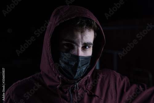Criminal in a jacket and a black mask during quarantine