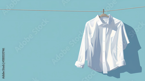Crisp, freshly ironed blank white shirt hangs on a minimalist clothesline, radiating simplicity and elegance against a. Ironshade. Illustration
