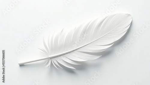 Crisp white feathers on seamless white background, design, photography, peaceful