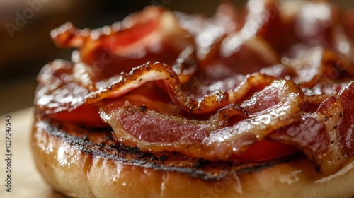 Crispy Bacon on Toasted Bun Close-Up Image