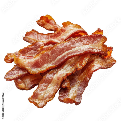 Crispy bacon strips isolated on a white transparent Background