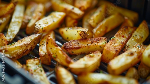 crispy batch of golden-brown fries emerging from the air fryer, perfectly seasoned and ready to eat