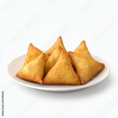 Crispy, golden samosas arranged on a white plate, showcasing a traditional snack beloved for its flavor and texture.