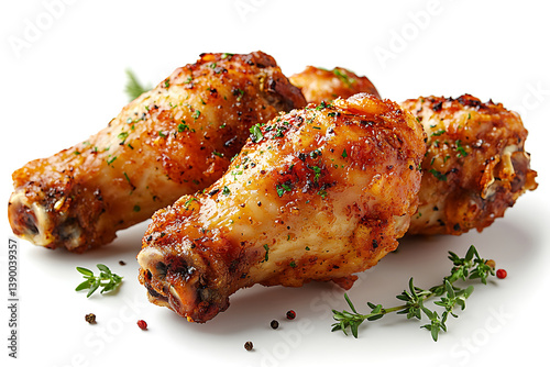 Crispy Roasted Chicken Drumsticks With Herbs And Spices On White Background