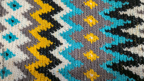 Crochet pattern of multicolored threads Yellow with gray, black and other colors