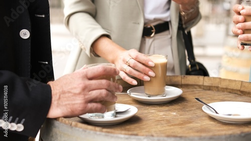 Crop business people having coffee during break