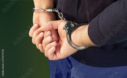 Cropped image of male hands in handcuffs behind his back