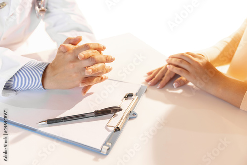 Cropped portrait of doctor, therapeutic or medical advisor supporting and care about pacient. Concept of healthcare, care and medicine.