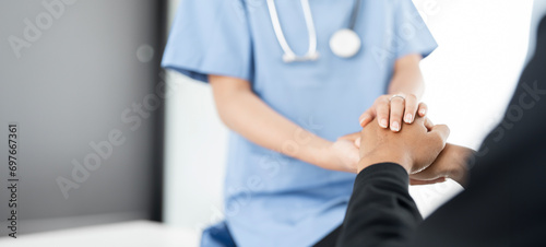 Cropped shot of a female nurse hold her senior patient's hand. Giving Support.