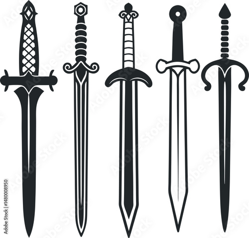 Cross Guard Sword and Dagger Vector Illustrations